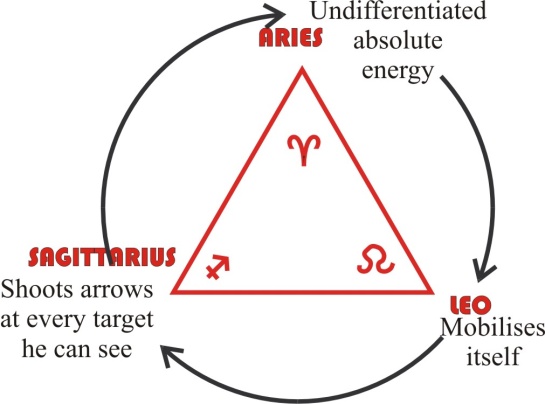This question of assimilation is very closely linked, because in effect it means that if we take the universe itself as a big sphere — I’ll take the diameter of it as the fundamental — then we can say there is a definite vibration which, to the appropriate tympanum, to the appropriate sensitive organ, say the divine ear, would sound the fundamental. And then if we divide it in the middle and stop it here, there would be an octave higher sounding there and there on both sides, which we would call, musically, a partial. And if we stopped at this again half here, this would be an octave higher than this one; and half again, that would be an octave higher; half, an octave higher still, this is going up to smaller and smaller divisions. And we see that the wavelengths of these parts are getting shorter. So we can then say that if we take this as the whole universe, that is the diameter of it, and then proceed to subdivide it until we can no longer divide it any more, we have reached the shortest wave in the universe ... haven’t we?