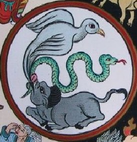 During the French revolution we saw that the French gods — you remember that one of the French kings was quite pleased to call himself the sun-king, and to try to re-animate this concept that kings are gods — these aristocratic rulers were actually overthrown. Like the gods in this Buddhist wheel of life, they did not believe that they could be overthrown. They didn’t understand that certain of their own members, a little lower down the hierarchy of gods, had sensed that they were going to be invaded by other forces.