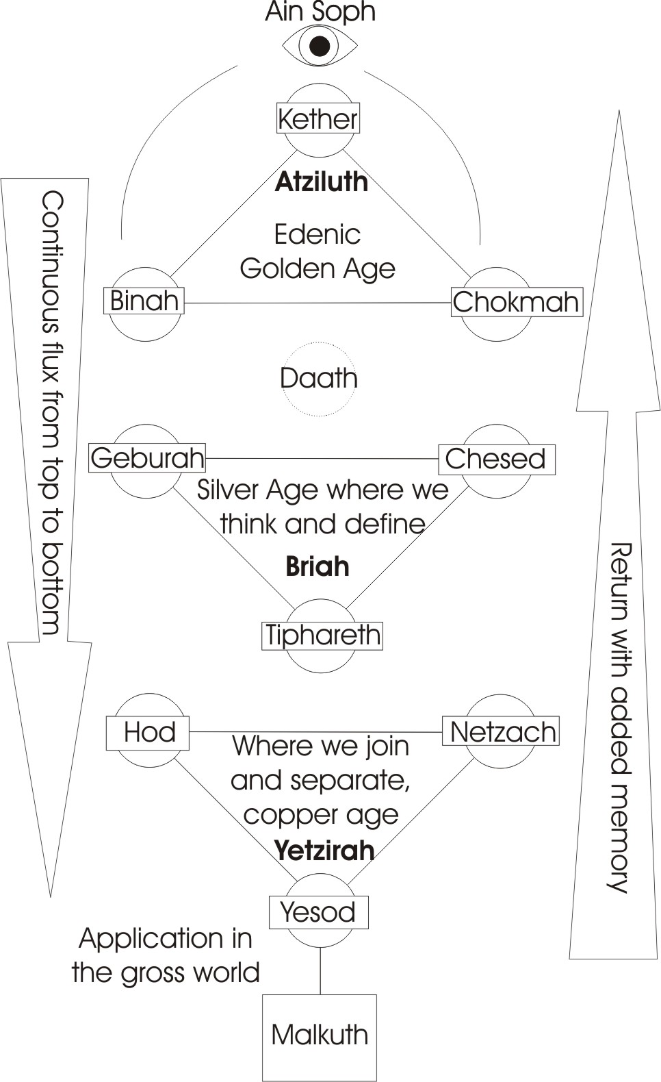 And then those embodied intelligences, proceed to formulate themselves in the world called Yetzirah. It is those intelligences who formulate themselves internally in the same way that an intelligent egg puts the divisions, the walls, inside itself before it develops into an embryo. And it is that same form which then, by absorbing gross matter, turns itself into a grossly objectified being. So that is a purely classic concept.