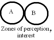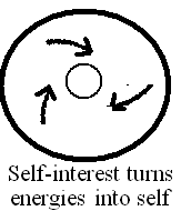 Now let us remember the light represents consciousness. What do these circles represent? They represent zones of perception, zones of the interest. We are all interested in something and that something can either be our own self or other than our self. Now, if the interest is in ourself, truly, then a being self-interested will turn its energy into itself like that. All its energies will go in like that. That would be an entirely self-interested being. That is one kind of interest. The other kind is the interest in other beings through two-way contingent stimulation.
